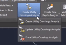This tool calculates crossings between utility segments (gravity and pressure network pipes), inserts COGO points at crossing locations and marks crossing elevation difference.