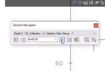 Use this tool to navigate through corridor section views by section navigator panel. Controls allow different ways of browsing through section views. You can also define zoom area to lock navigation to specific area.
