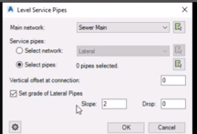 This tool allows you to set elevations and grades for all your service lines going into the main without using the structures at connection points.