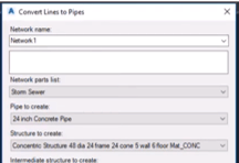 This tool creates pipe network structures from selected COGO points. Command can be used to automate a pipe network creation process from existing surveyed data.