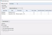 This command allows users to select multiple profile views and edit all at one time. Edits that can be performed using this tool are changing the Profile View Styles and Bands that are being used on all profile views selected and/or changing the band information such as Profile 1 and Profile 2 values and lastly modify the elevations.
