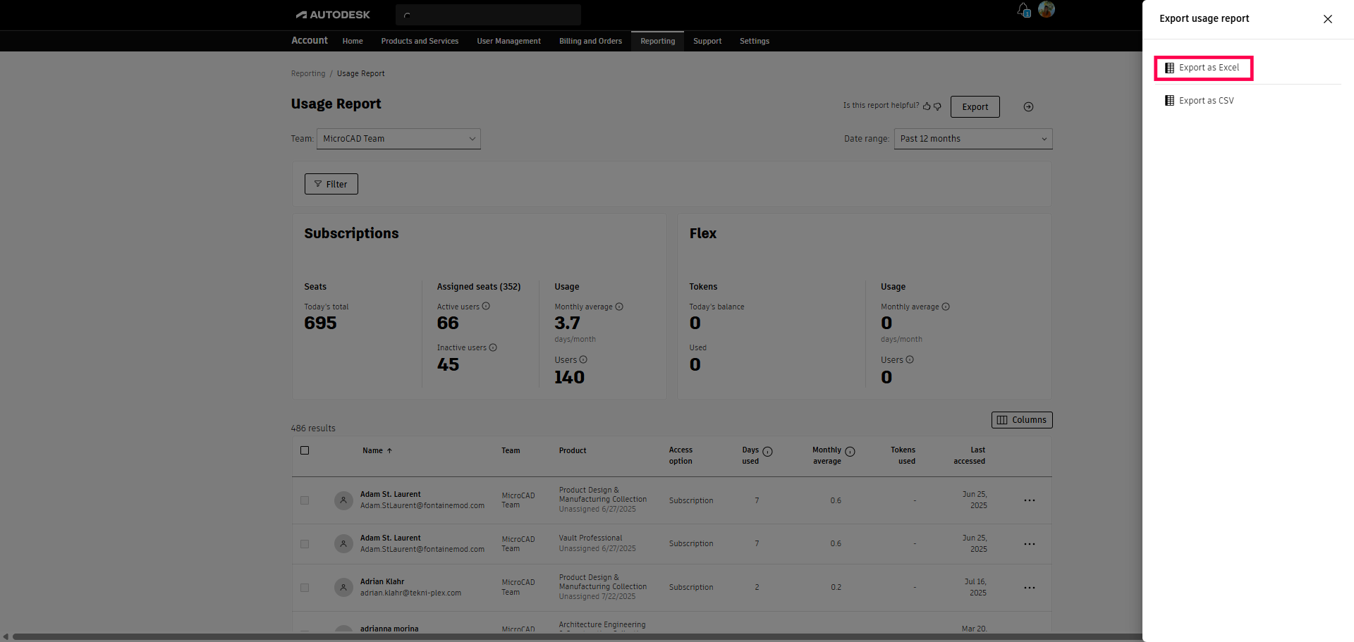 8. A window titled Export Usage Report will open. Select the option Export as Excel.