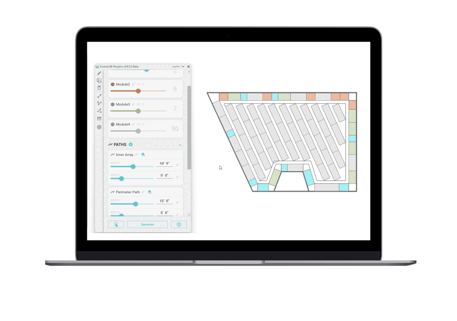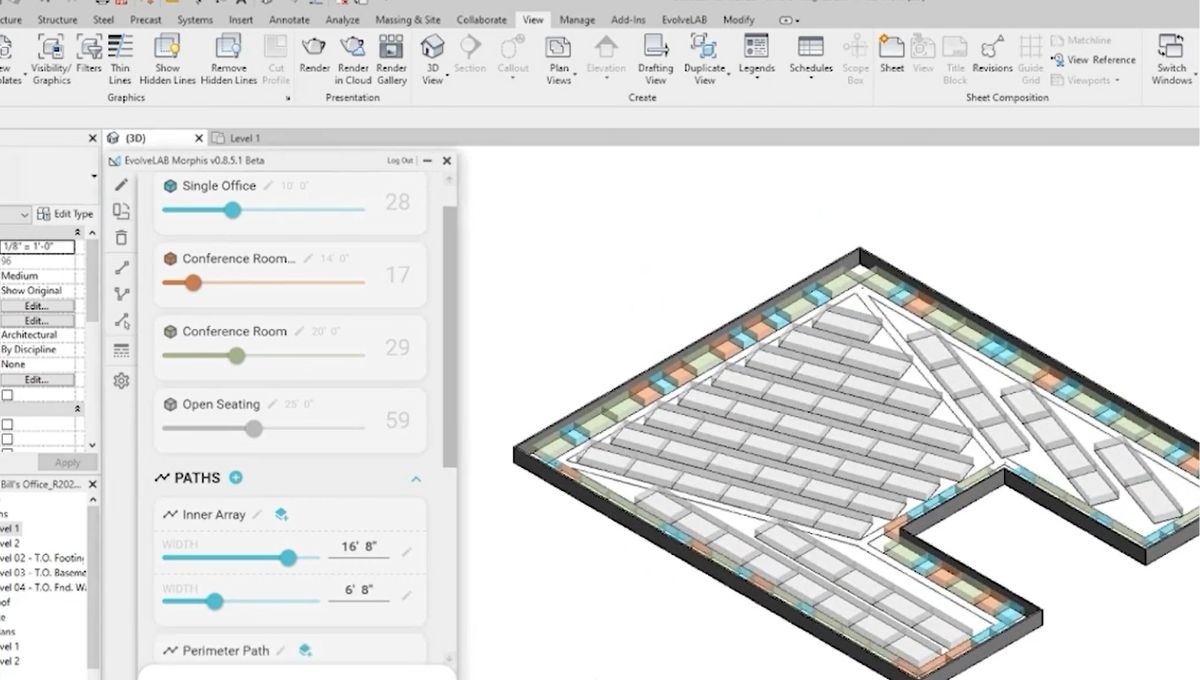 Users can select rooms, areas, or regions in a model to instantly generate layout options. With an intuitive slider-based interface, designers can adjust parameters in real time, visualize changes immediately, and quickly evaluate alternatives during the schematic phase. Morphis also supports path creation for circulation and zoning, along with customizable modules for repeatable elements like housing units or retail spaces.