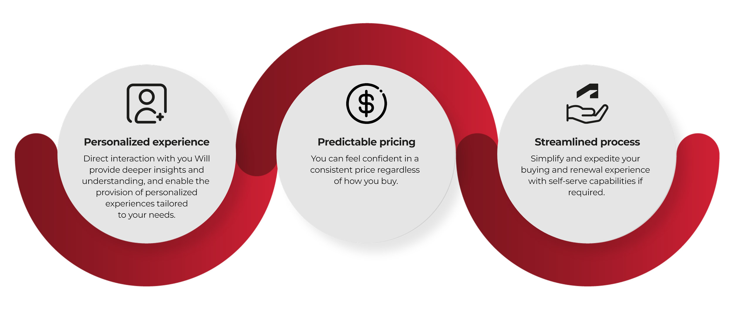 - Streamlined process – simplify and expedite your buying and renewal experience with self-serve capabilities if required.